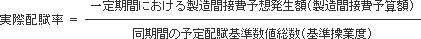 各製品への予定配賦額は、次式の通り、予定配賦率に製品の実際配賦基準数値を乗じて求める。なお、予定配賦率は、期首時点において見積もった今後一年間の配賦基準数値(予定配賦基準数値、基準操業度)ならびに製造間接費予想発生額(製造間接費予算額)から算定する。