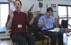 ここでは映像のつなげ方だけではなく、翻訳のテロップにも工夫していた。例えば、ドイツのリハビリテーションセンターで兵役代替役務を行っているニルス君がインタビューに答えるシーンでは、「Military service is always I don’t like it. I don’t know why many many young people chose this part of the official service.」31に対して、「僕は兵役には就きたくないね。兵役に行く人の気がしれないよ」という具合に、本人の言っているコンテクストの中でできる限り、いかにも「彼は兵役に就きたくないんだ」という意思をもっていると思わせるような翻訳にしている。こうする事で兵士・兵役代替役務者両者の生の“声”を聞いてもらおうというねらいである。