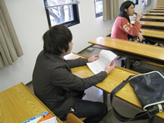 写真撮影は自宅生・下宿生の友達に頼みました。撮影はテストが始まる前の7月に行い、ひとつのシーンにつき1枚ずつ撮りました。1枚撮ればいいのですが、撮影される方も緊張してしまい、ぶれてしまったりして、なかなかうまく撮れないことがあり、何回も撮り直しをしました。また、撮影を頼んだ友達が、学校に来ないこともあり、写真が夏までに揃わず、結局全部撮り終わるのは秋になってしまい、パンフレット作成が進まなかったりもしました。