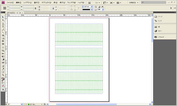 「マージン・段組」を選んだ場合、レイアウトグリッドのないドキュメントが作成されます。表紙など写真の多いページは、この方がよいでしょう。 |